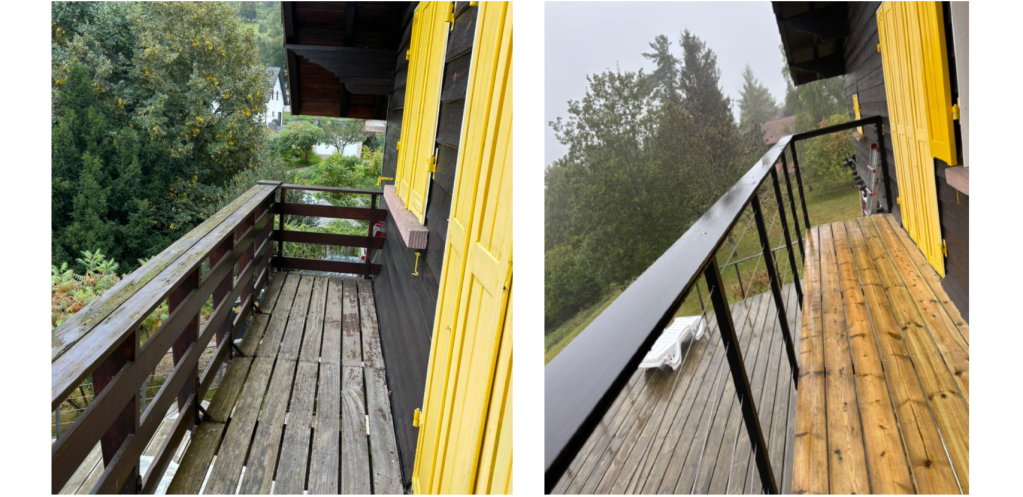 Un balcon repensé alliant robustesse et élégance : après la dépose de l’ancien, nous avons conçu une structure métallique habillée de bambou, sublimée par un garde-corps en inox, pour une pose à l’identique alliant authenticité et modernité.